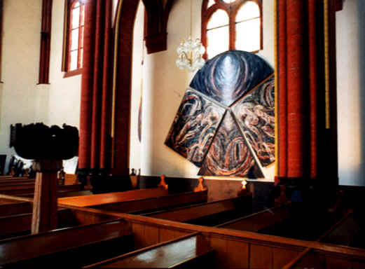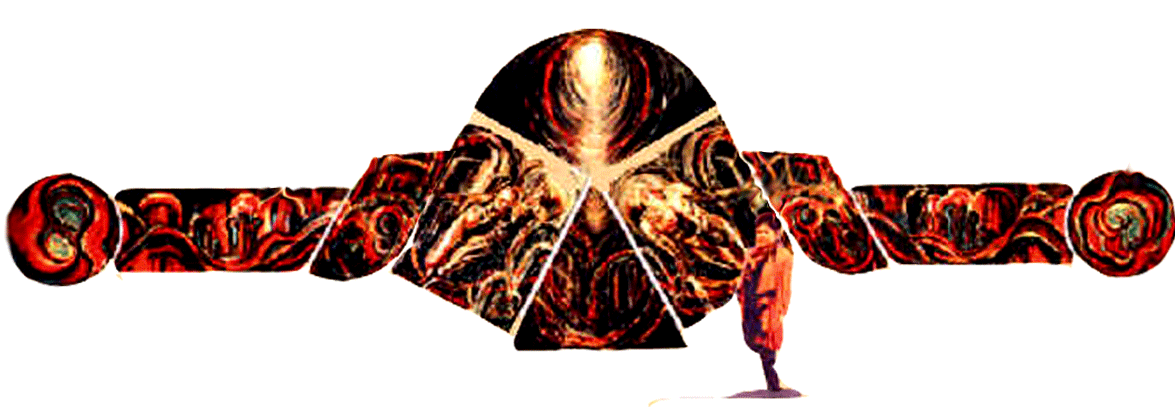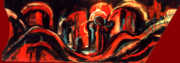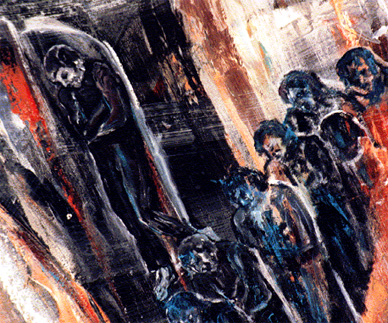 "QUO VADIS" Die Idee zu diesem Werk entstand im Jahre 1992; mit der Umsetzung begann die Malerin R. VOGEL-STELLING Mitte 1994. Das einst als Quaternio geplante Großwerk "QUO VADIS" besteht zwischenzeitlich aus 10 Elementen in einer Gesamtdimension von über 3.80 m Höhe und 14.0 m Länge. Es soll jährlich um 2 - 4 Elemente wachsen und eines Tages als eines der größten, je von einer Malerin geschaffenen Kunstwerke der zeitgenössischen Kunst, in die Geschichte eingehen. Die Malerin R. VOGEL-STELLING hat sich zum Ziel gesetzt, an diesem Werk bis zum Ende ihres künstlerischen Schaffens zu arbeiten. Es wächst vom Kern her nach außen und ist somit für den Betrachter immer vollendet. Die einzelnen Elemente sind wiederum so konzipiert, dass immer neue Bildkompositionen entstehen werden, und das Ganze trotzdem eine Einheit darstellt. Naturalistisches und Abstraktes verbinden sich hier zu einem gelungenen Gesamtwerk. Ihr temperamentvoller, expressiver Malstil erweckt gewollt Spannungen und gestattet ihr außerdem die so wichtige, künstlerische Freiheit in der Umsetzung ihrer Empfindungen und Ideen. Für den Mittelpunkt des Werkes wurde bewusst die Form des Engels gewählt, da der Engel immer noch das Synonym für Glück und Frieden ist. Im Vordergrund stehen eine weibliche und eine männliche Figur, die in Richtung hellerleuchtetem Himmel einer sicherlich besseren Zukunft, dem Paradies, entgegensehen. Der hellste Punkt am Ende des Tunnels birgt die Umrisse eines Embryos; also neues, hoffentlich menschenwürdigeres Leben. Innerhalb des Werkes "QUO VADIS" stößt man auf Hunderte auf der Flucht befindlicher Menschen. Sie vegetieren im Freien, des Menschseins unwürdig. Um ihre ungewisse Situation noch nachdrücklicher aufzuzeigen, wurden sie- wie alles andere auf dem Gemälde- in Nebelschwaden gehüllt. Gerade am Ende des 20. Jahrhunderts ist die Flucht von Millionen von Menschen ein Alptraum und eine Geißel für die Weltengemeinschaft geworden. Bedingt durch Kriege, Naturkatastrophen, Hunger, Überbevölkerung, Elend, Machtstreben und dem Egoismus einzelner Individuen sind hierdurch immer mehr Menschen betroffen. Auf der Suche nach einer neuen, lebenswerteren Zukunft fliehen sie um die ganze Erde; sie suchen den Frieden, die Freiheit, die Erfüllung ihres Lebens. Viele von ihnen erreichen ihr Ziel nie und sterben auf der Flucht eines grausamen, gewalttätigen, hoffnungslosen und erbarmungslosen Todes.IVIT HORDAK |