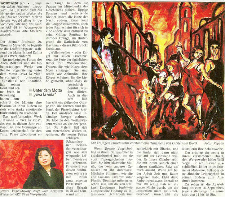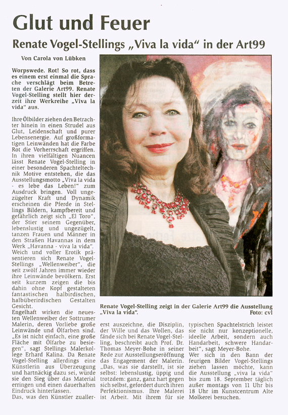 Lust und Lebensfreude "Viva la vida": Neue Arbeiten von Renate Vogel-Stelling bei ART99