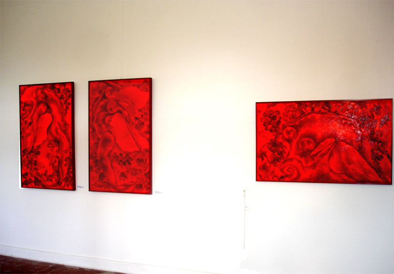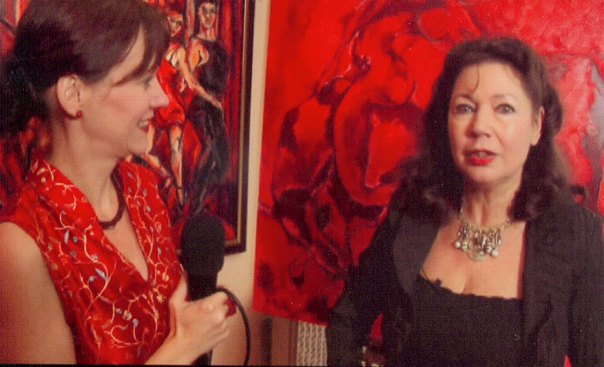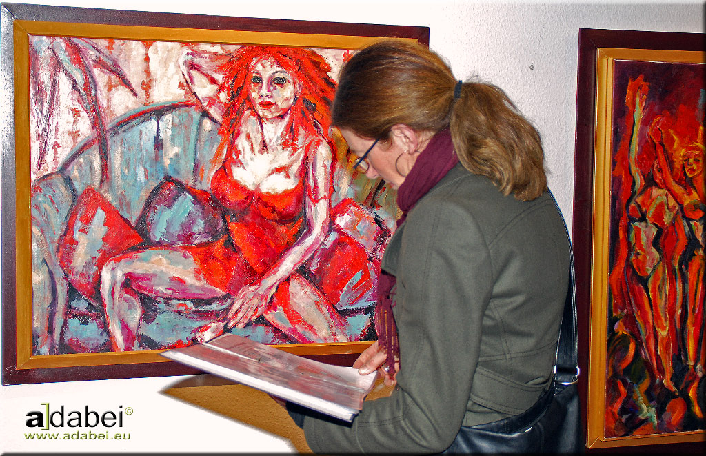 Künstlerin R. Vogel-Stelling vor ihren Werken