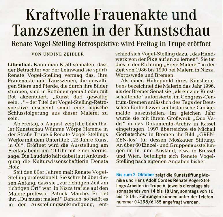 fand eine große Einzel-Ausstellung in Verden/Aller statt