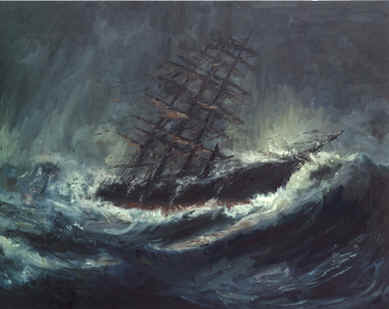 "Untergang der Pamir" 130 x 160 cm, Öl, dass dramatischste Werk von WILLI VOGEL ... Anno 1958 (verkäuflich) |